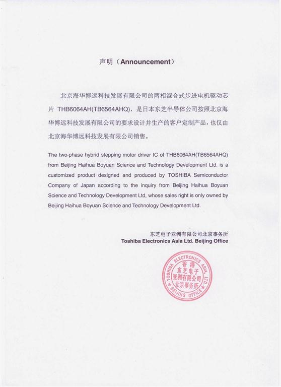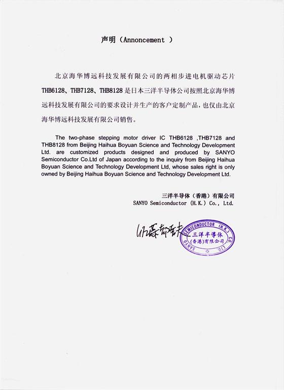 海华博远与日本东芝、日本三洋关于定制芯片的声明